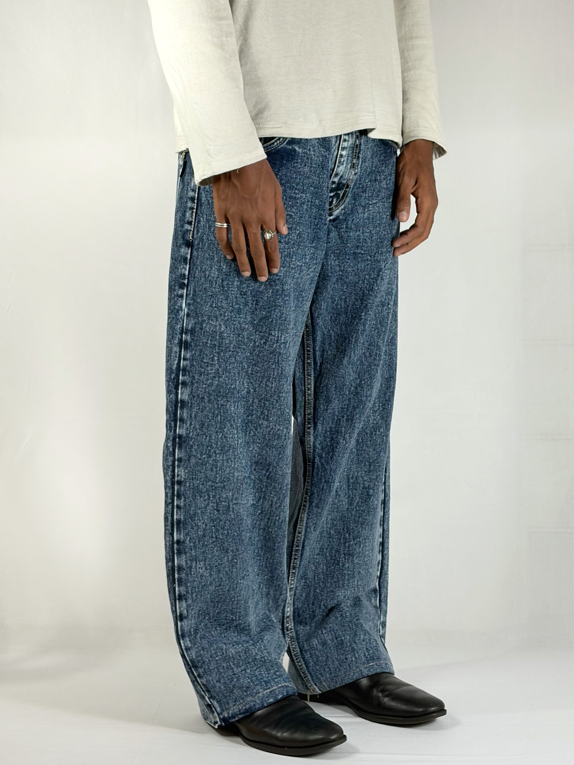 ARTIC BLUE WIDE pant brings a fresh take on classic denim with its cool-toned blue wash and relaxed wide-leg silhouette. Designed for effortless style and comfort, it features a softly faded texture that adds depth and a naturally worn-in look. The roomy fit allows easy movement while maintaining a clean, structured fall that enhances its modern streetwear appeal. Versatile and understated yet distinctive, this pant pairs seamlessly with both minimal basics and layered outfits, making it a standout essential for everyday fashion.