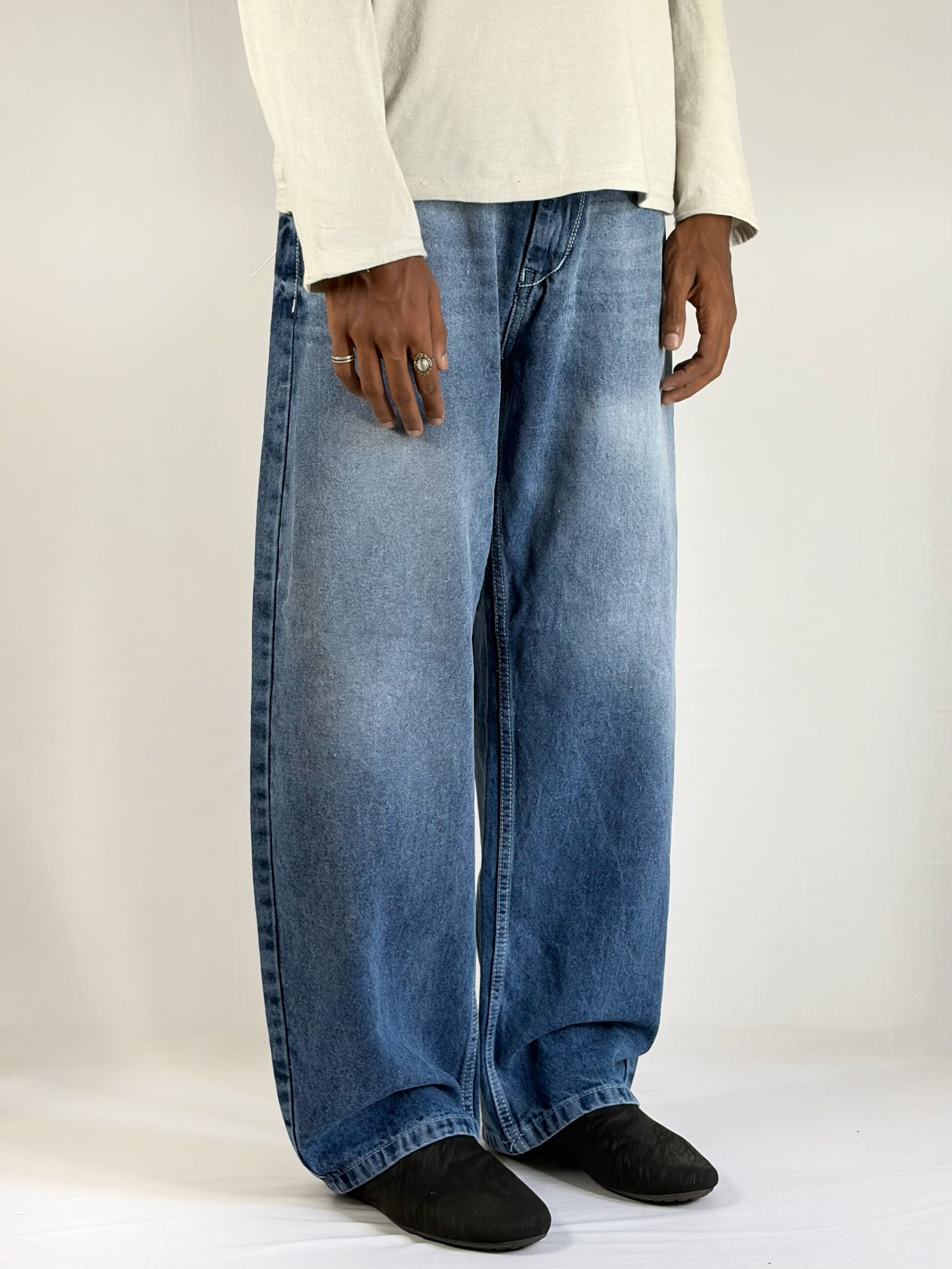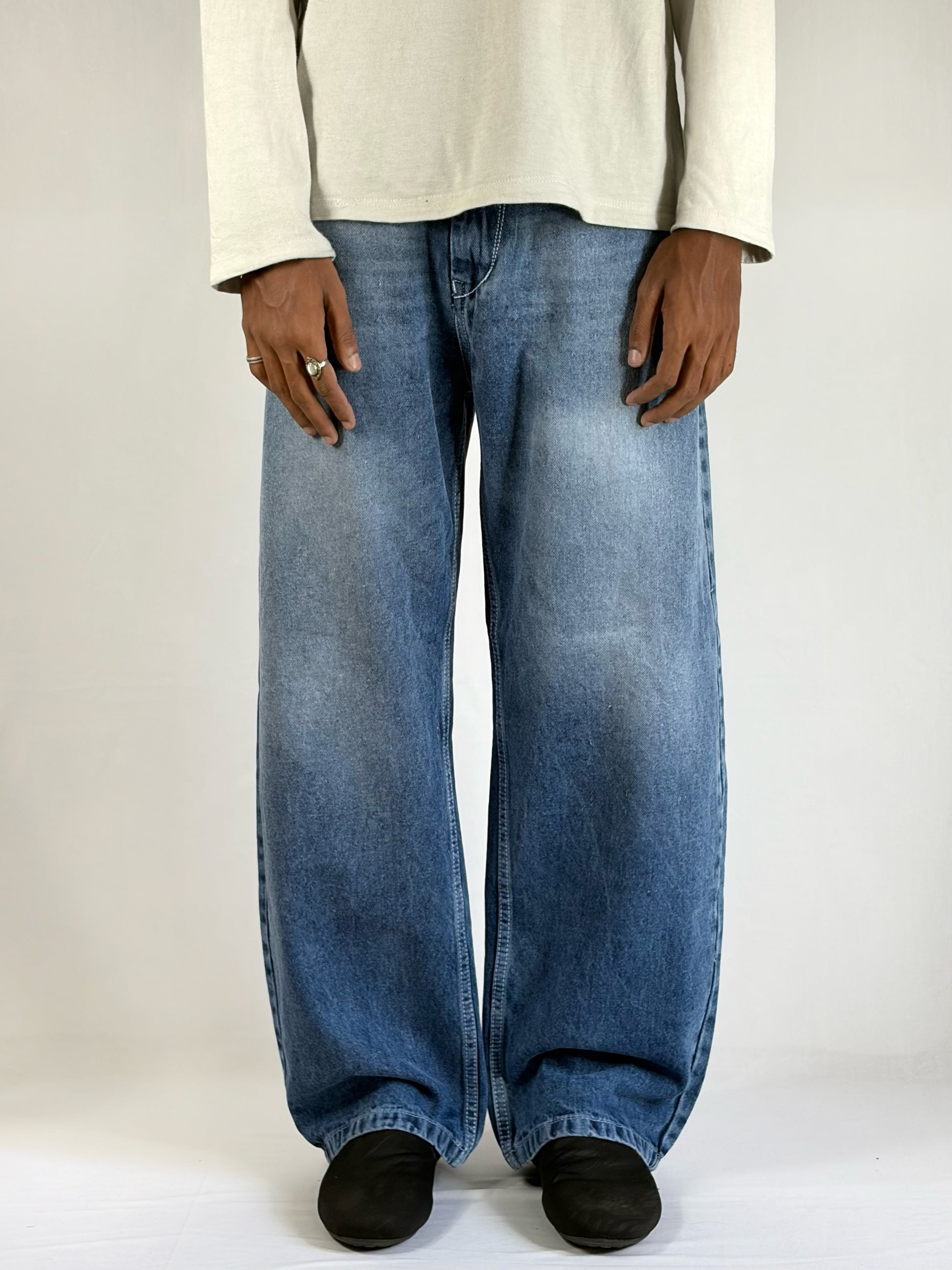SKY WASHED WIDE pant blends relaxed comfort with a refined vintage aesthetic, featuring a wide-leg silhouette that delivers a bold yet effortless look. Designed in a soft sky-blue washed finish, it showcases subtle fading that adds depth, texture, and a naturally worn-in character. The loose fit ensures easy movement while maintaining a clean, structured drape that enhances its modern appeal. Versatile and stylish, this pant pairs seamlessly with minimal basics or layered outfits, making it a standout essential for everyday wear with a contemporary edge.